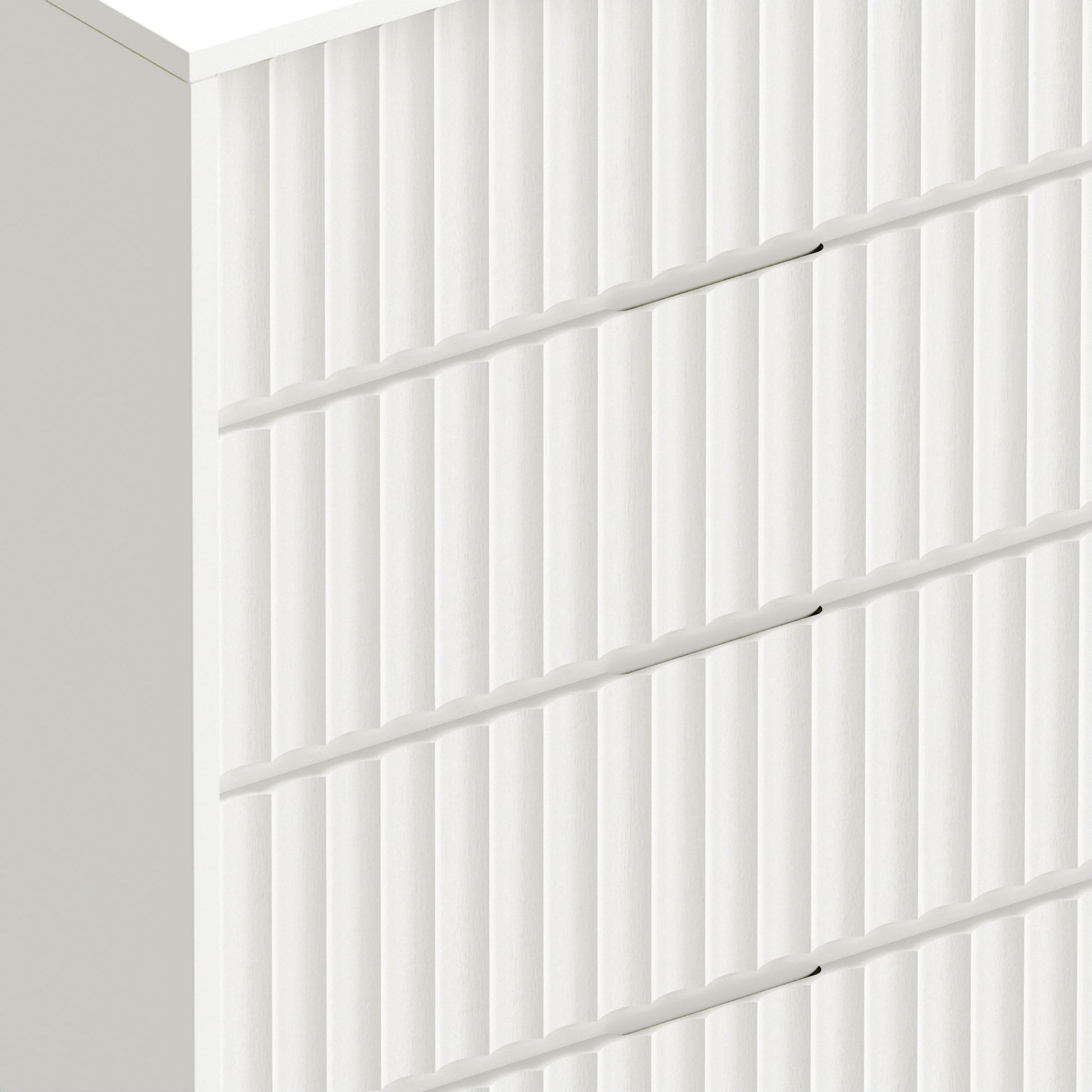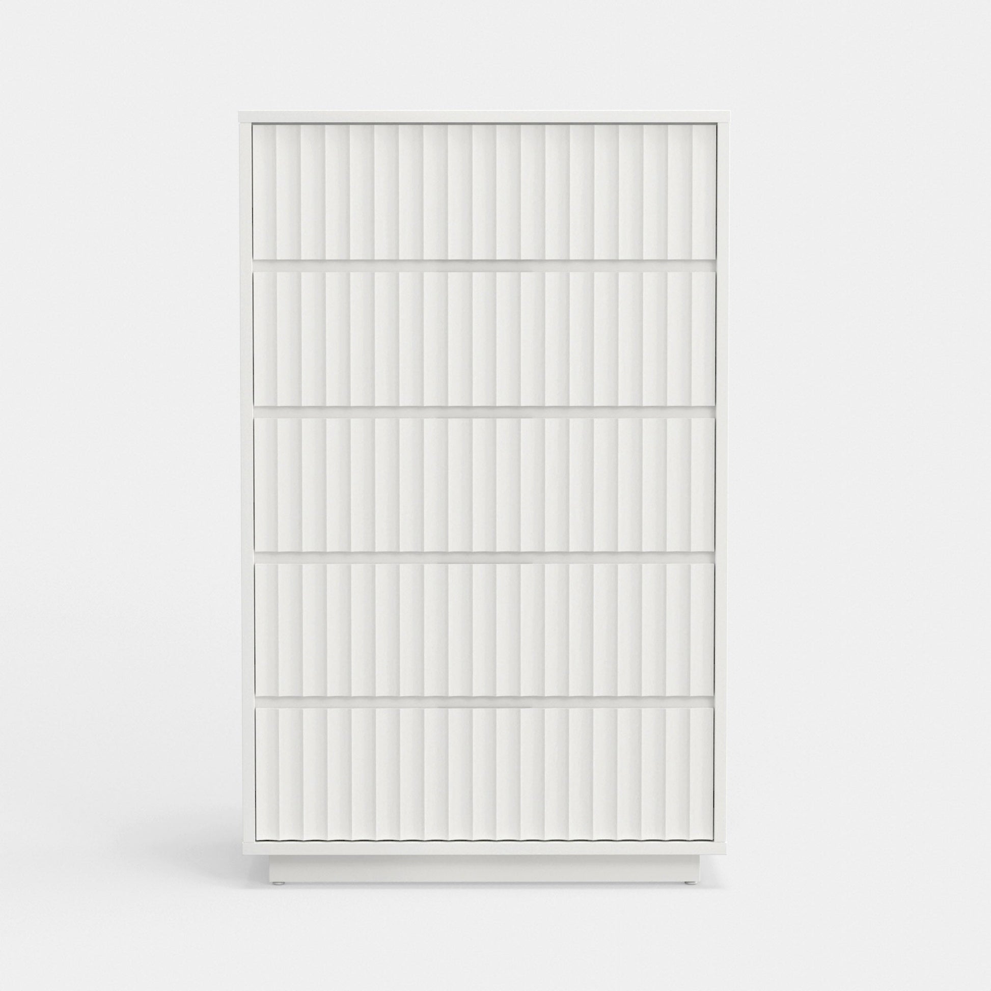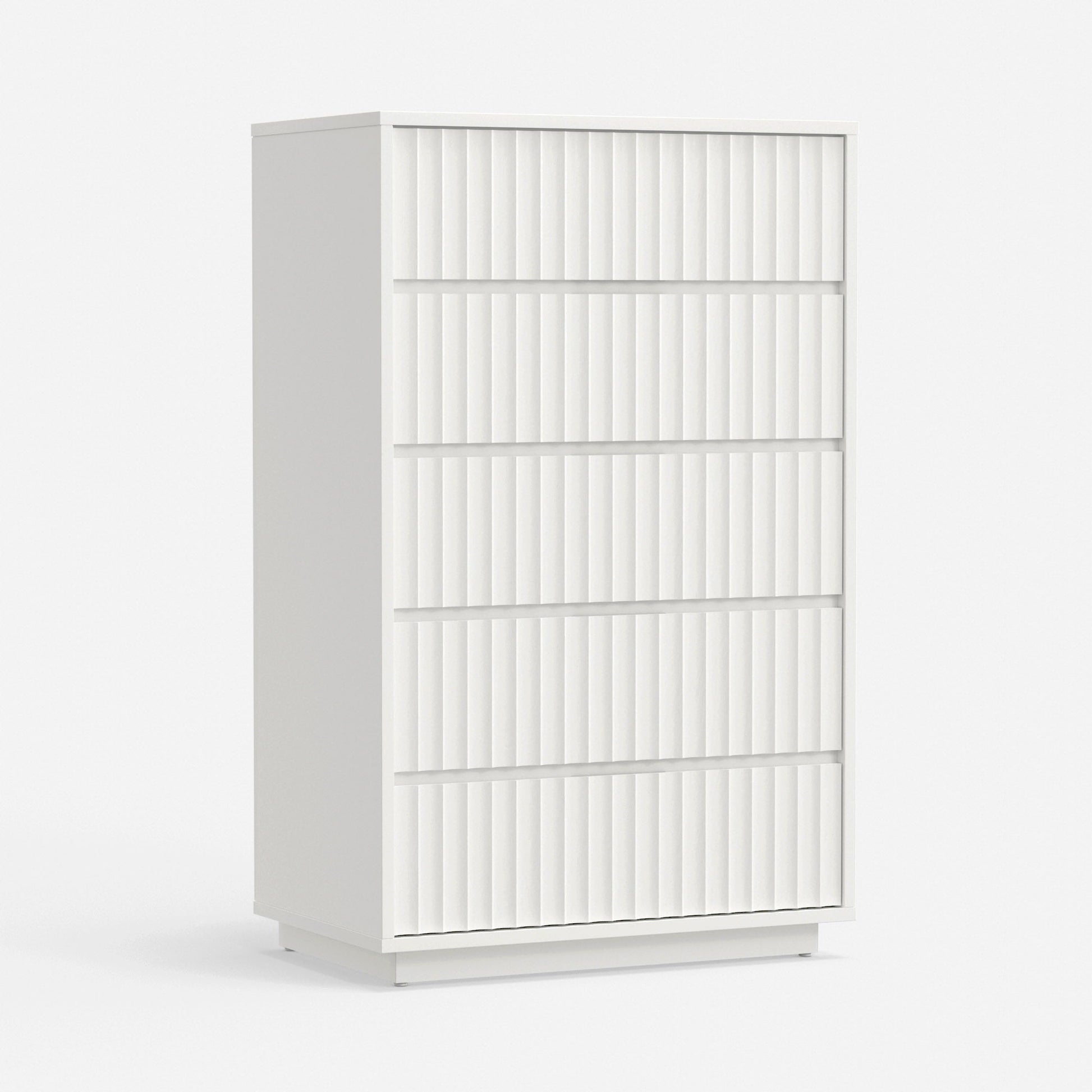 Made from rich Mahogany wood with a beautiful white finish, this chest will add a touch of elegance and sophistication to any room. Featuring a scalloped drawer front design detail, the Blanca 5 Drawer Chest is not only beautiful but also highly functional.