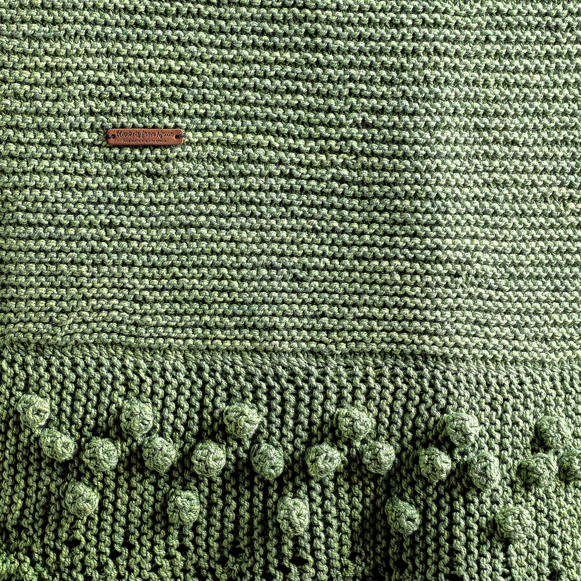 Made from delightfully thick and plush yarns, the chunky woven texture of this blanket creates a contemporary style and feel. This blanket showcase a unique, knitted lace decoration that is perfect to decorate the back of a chair or couch, or thrown over a bed. This contemporary, pure eco cotton blanket is hand-knitted in a selection of nature’s colors with unique bobbles for decoration. Handmade with love from the heart of Karoo. Giving hope one stich at a time.