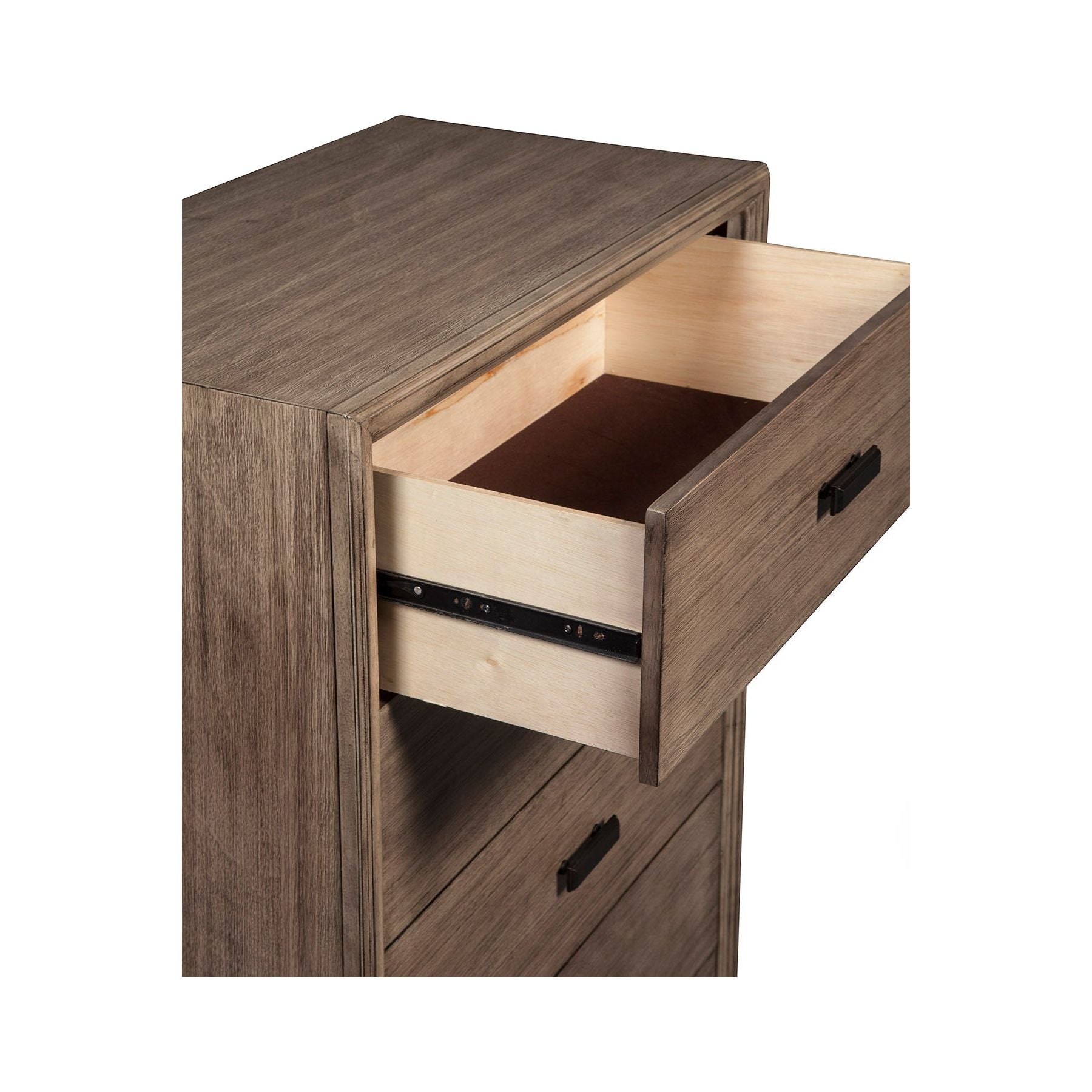 Style and elegance can be used to describe the Camilla wood nightstand. Trendy Antique Gray finish while crafted with Plantation Mahogany wood Solids & Okoume Veneer. 5 drawers provide storage. The matching bed purchased separately features a gorgeous upholstered headboard with nail head trim that compliments the other pieces in the Camilla bedroom collection.