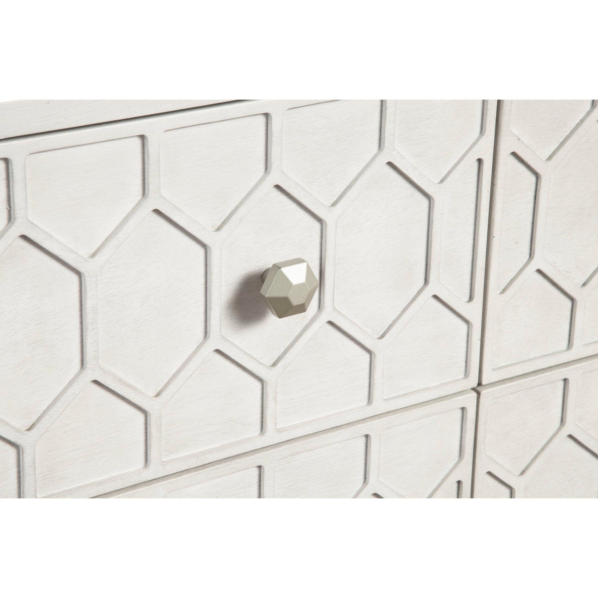 The Denver Six Drawer Dresser will bring a crisp, natural look to your bedroom while adding a pop of detail with its unique honeycomb motif. Featuring a light gray stain and geometric knobs that add a subtle contrast, this refined dresser balances simplicity with the bold to match your design aesthetic. Whether you love clean lines and minimalist design or the latest styles in farmhouse chic, this wooden wardrobe will nestle perfectly in your home. Handcrafted from Mahogany solids and veneer, this sturdy chest of drawers comes fully assembled and includes metal ball bearing drawer glides as well as felt-lined top drawers to provide convenience to your storage needs.