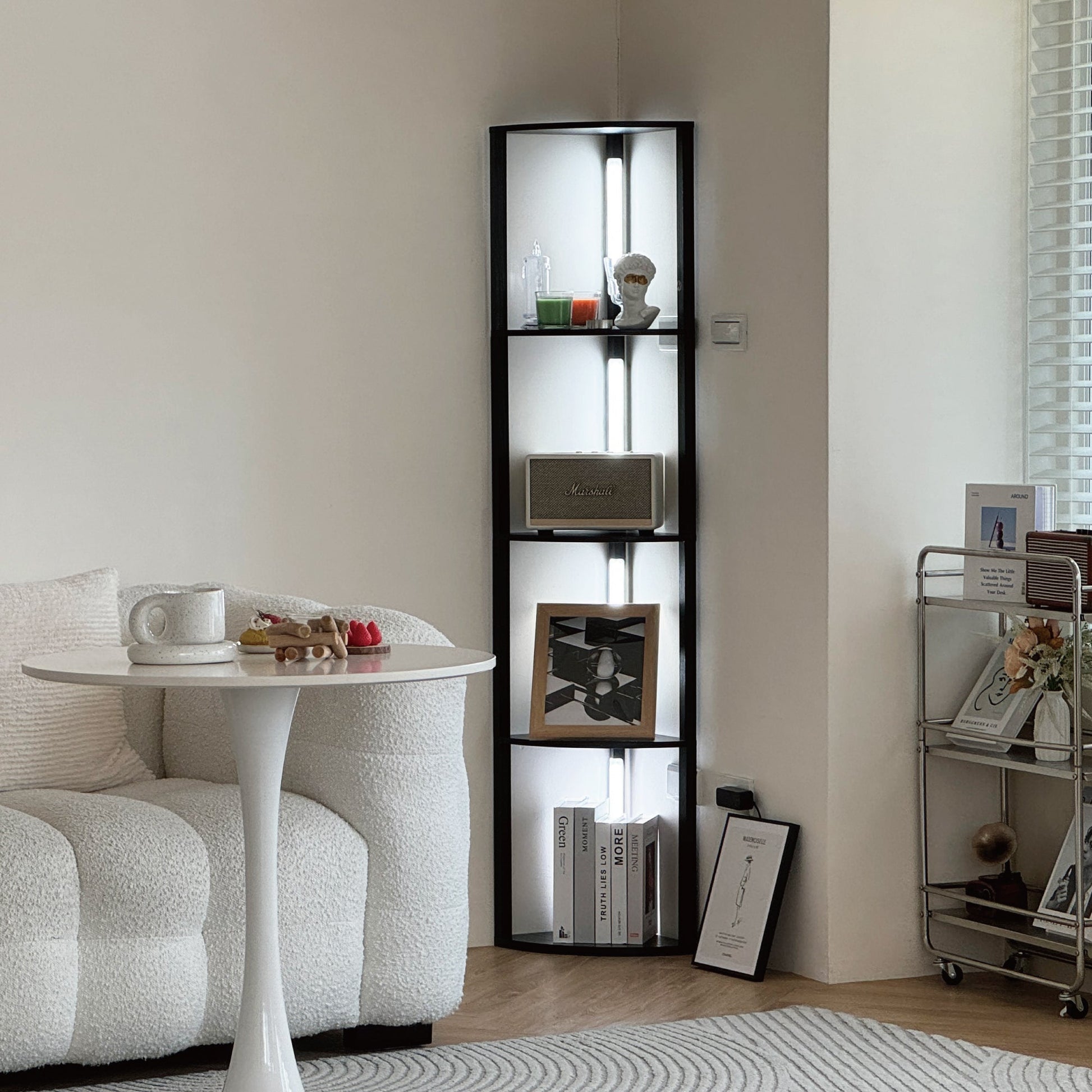- PET-FRIENDLY - Our tall shelf features a child and pet-friendly UV coating, ensuring a safe and odor-free lighting experience for your rooms, without the concern of harmful airborne toxins.