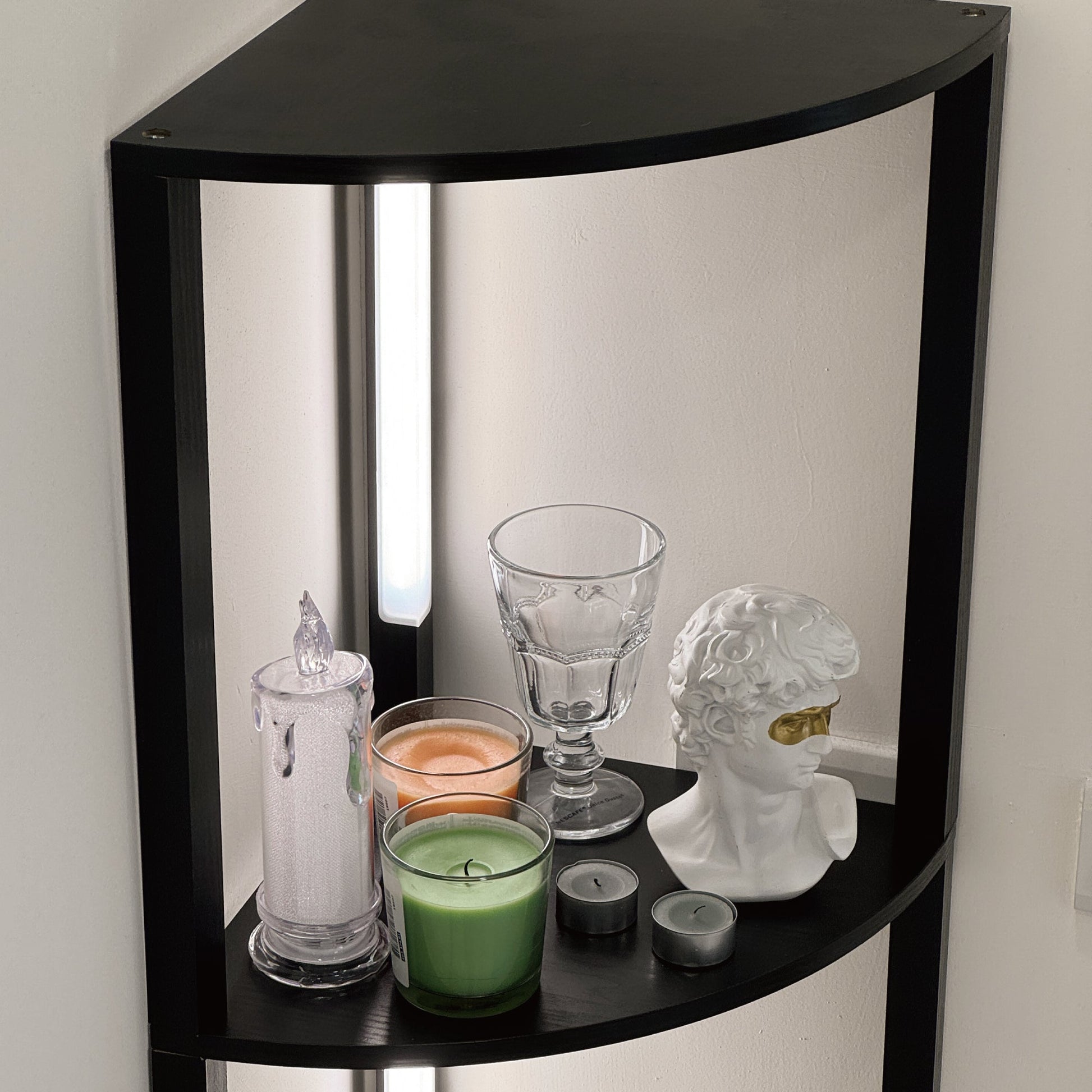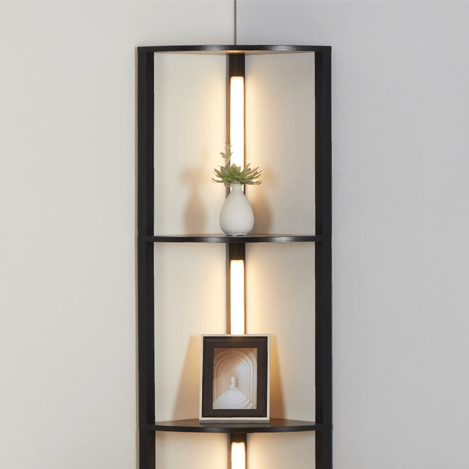 - STURDY CORNER SHELVES - This corner display floor lamp is built strong enough to hold up to 60 lbs on each tier allowing you to show off what matters most to you in your perfect home corner.