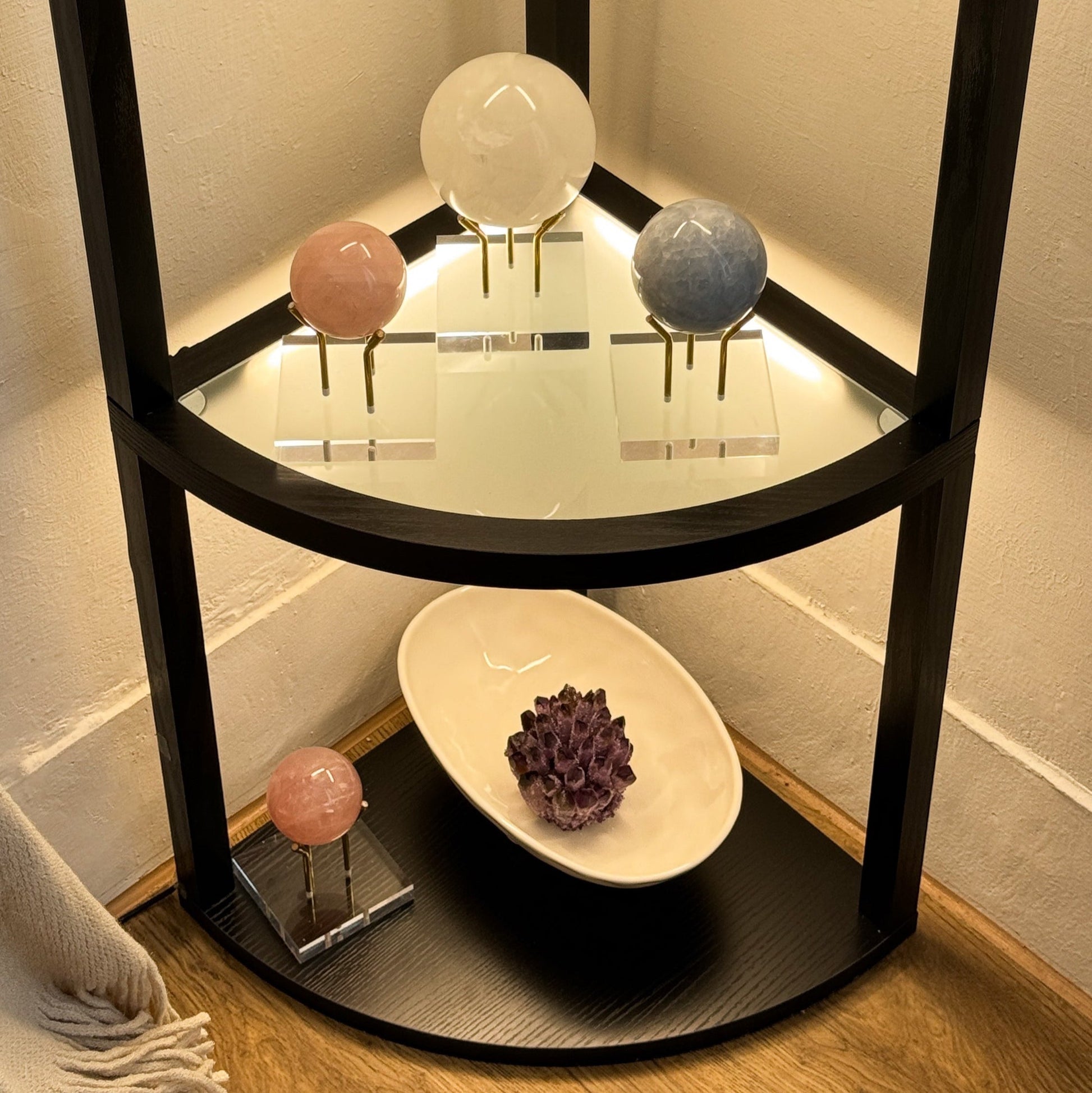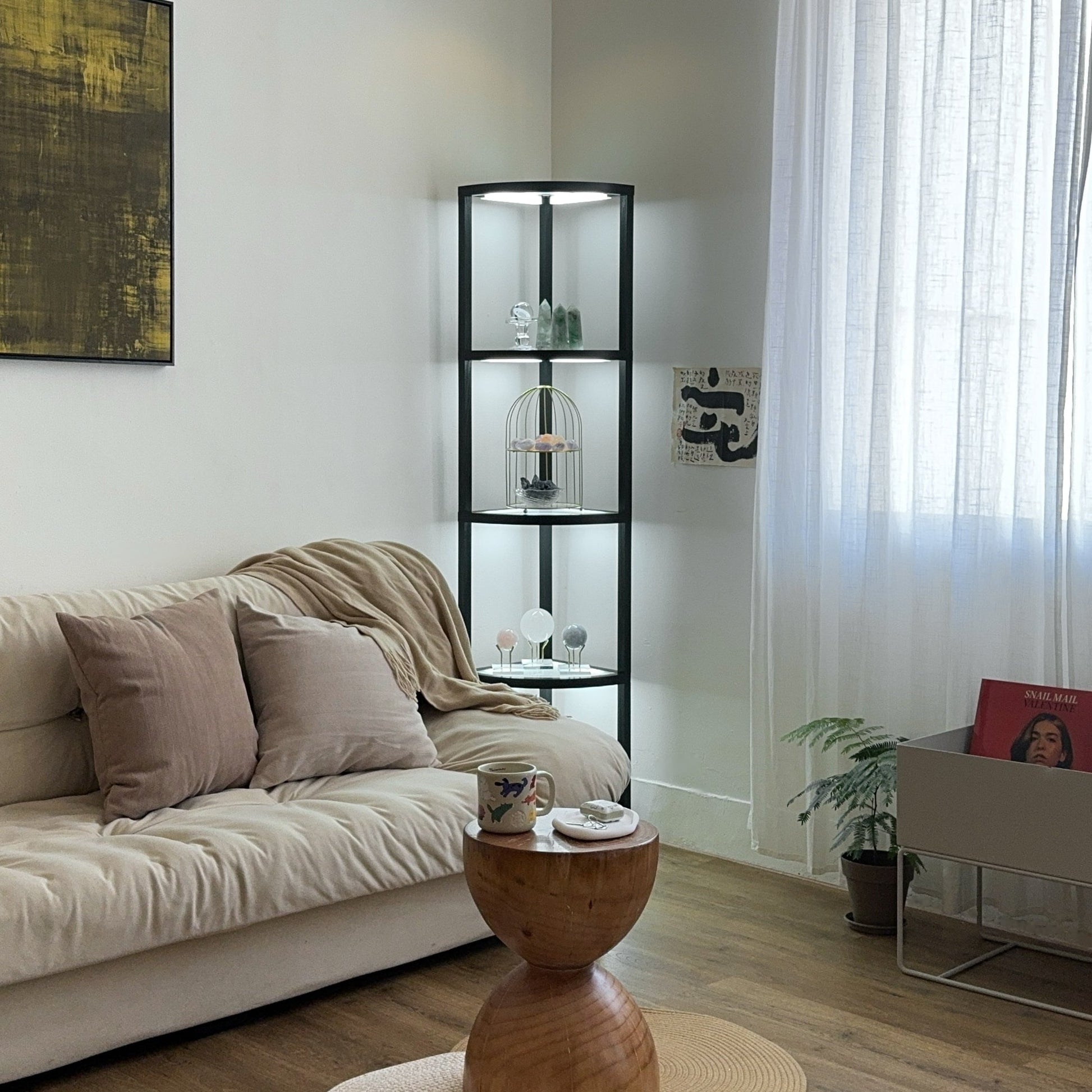 - EDGE DESIGN: Embrace the versatility of our corner display shelf's edge design, fitting seamlessly into random nooks and crannies.
