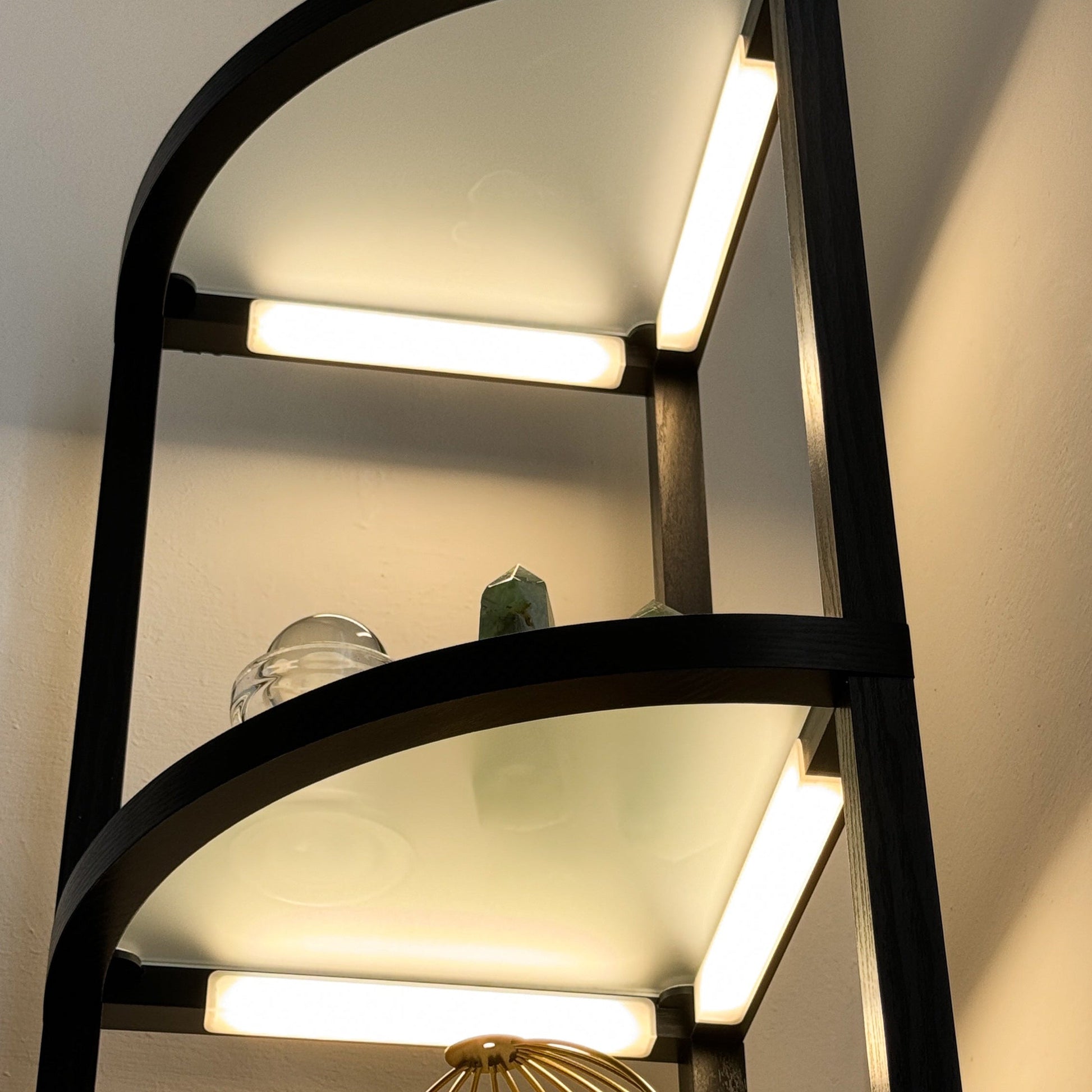 - COLOR CHANGING TEMPERATURE: Our LED display shelves are now enhanced with Correlated Color Temperature (CCT) technology. You can now effortlessly transition between warm and cool-toned lighting (2700K to 6000K).