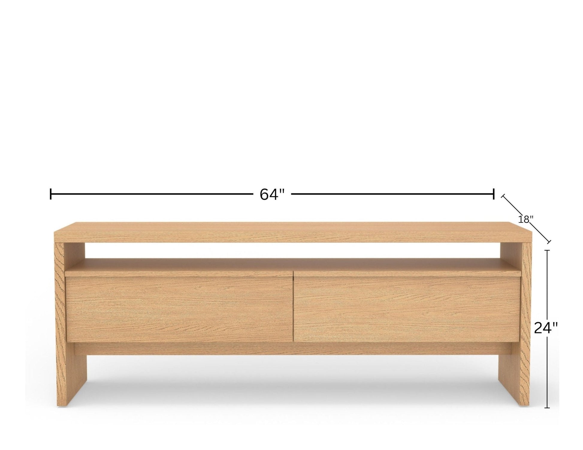 Introducing the Flo Collection TV Console, a seamless blend of sturdy Mahogany and refined Oak Veneer in a natural finish that brings timeless beauty to your living room. This fully assembled console offers ample storage with two spacious drawers, each providing a total of 2.5 cubic feet of space and featuring metal ball bearing soft close drawers, ensuring an organized home entertainment hub. With its durable construction and elegant design, the Flo Collection TV Console effortlessly complements your decor while providing effortless convenience for your multimedia needs. Elevate your living room decor and simplify your entertainment setup with this essential piece.