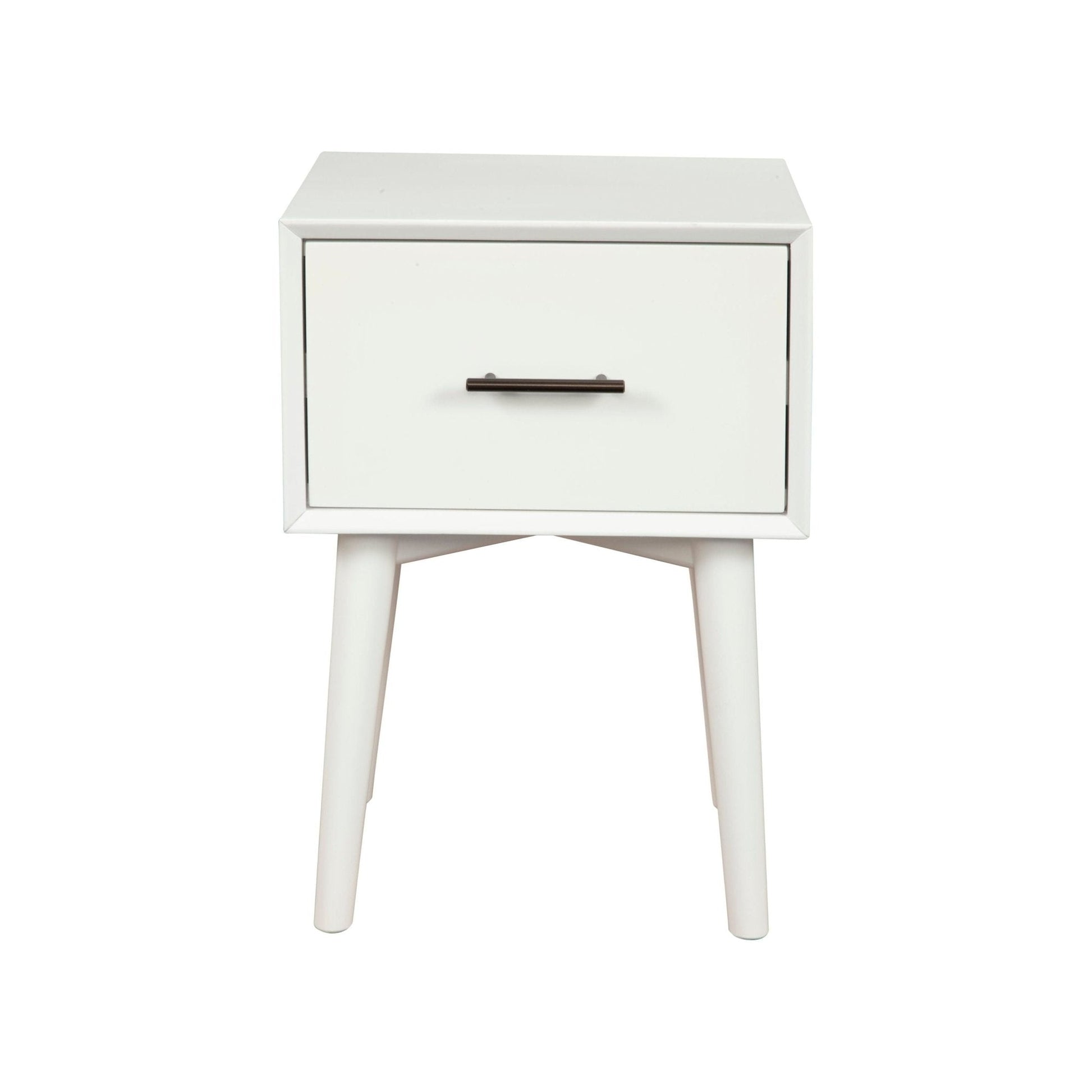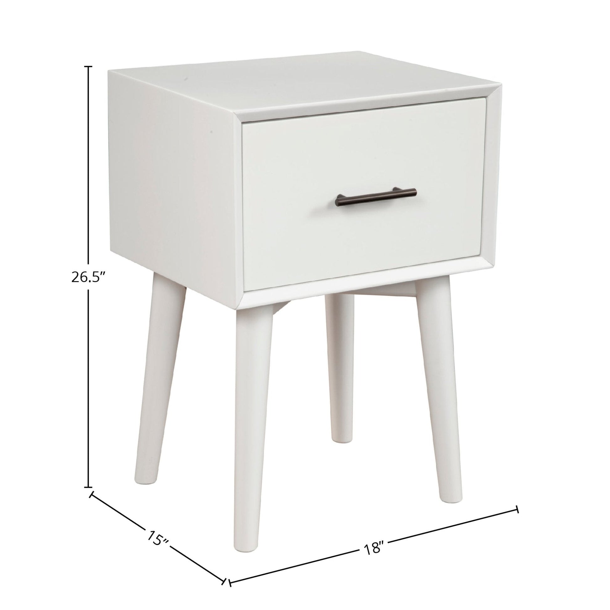 Lean over and grab your book or remote from the convenience of your sofa with the Flynn end table. Brimming with Mid-Century modern appeal, this piece is designed from Mahogany wood solids and Okume veneer and features clean-lines that work perfectly with contemporary spaces. Sleek, tapered legs add an understated look, while a spacious surface top is ideal for a stylish lamp or table clock. The storage drawer is felt lined. Available in a beautiful white finish. Mix and match with other pieces from the Alpine Furniture Flynn collection.