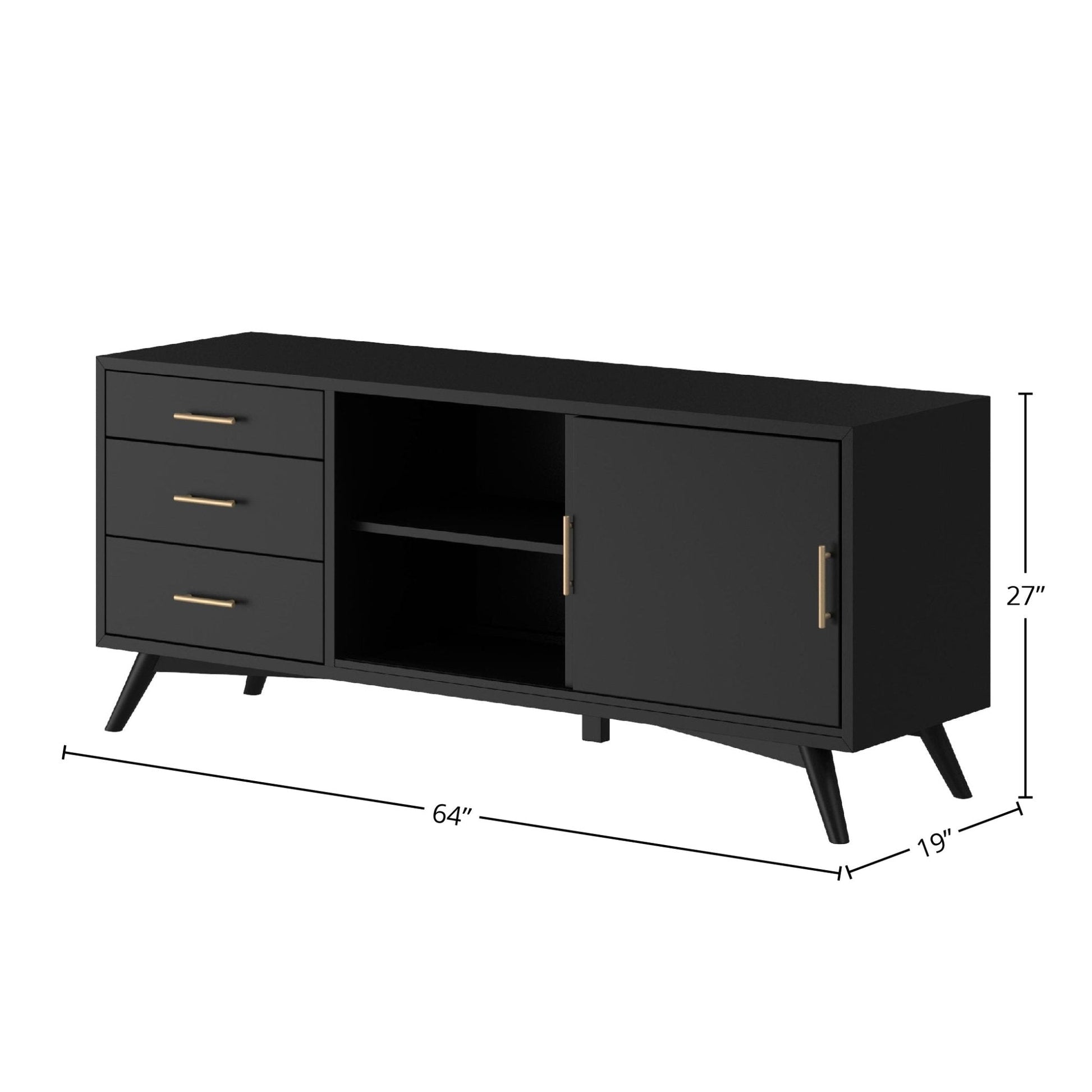 The Flynn collection features the classic lines of Mid-Century Modern furniture that never goes out of style. Its sturdy frames are built to last, constructed of sustainably sourced solid Mahogany wood and Okoume Veneer to ensure a lifetime of use. The TV console provide a roomy storage solution featuring 3 drawers and media cabinets with rolling doors to hold your valuables and electronic devices. Drawers are made with English Dovetail construction and ball bearing metal drawer glides. The Flynn collection makes it easy to create a cohesive decorating style or mix and match for a more personalized look.