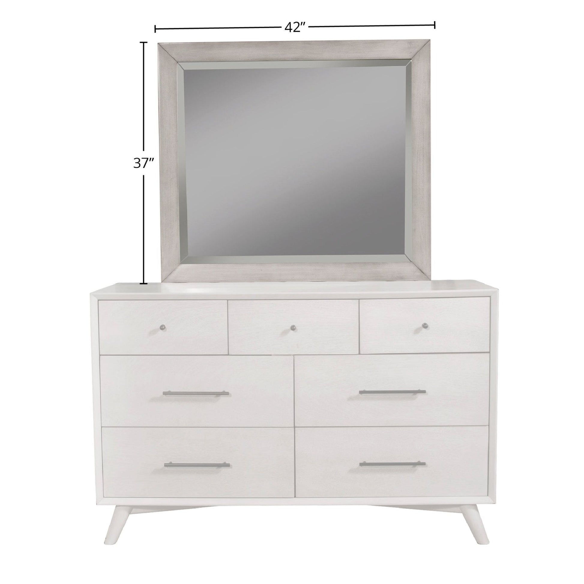The Flynn collection features the classic lines of Mid-Century Modern furniture that never goes out of style. Its sturdy frames are built to last, constructed of sustainably sourced solid Mahogany to ensure a lifetime of use. The Flynn bedroom makes it easy to create a cohesive decorating style or mix and match for a more personalized look. The mirror easily attaches to the matching Flynn dresser sold separately. Coordinates with other pieces in multiple finish options as part of the Alpine Furniture Flynn collection sold separately.