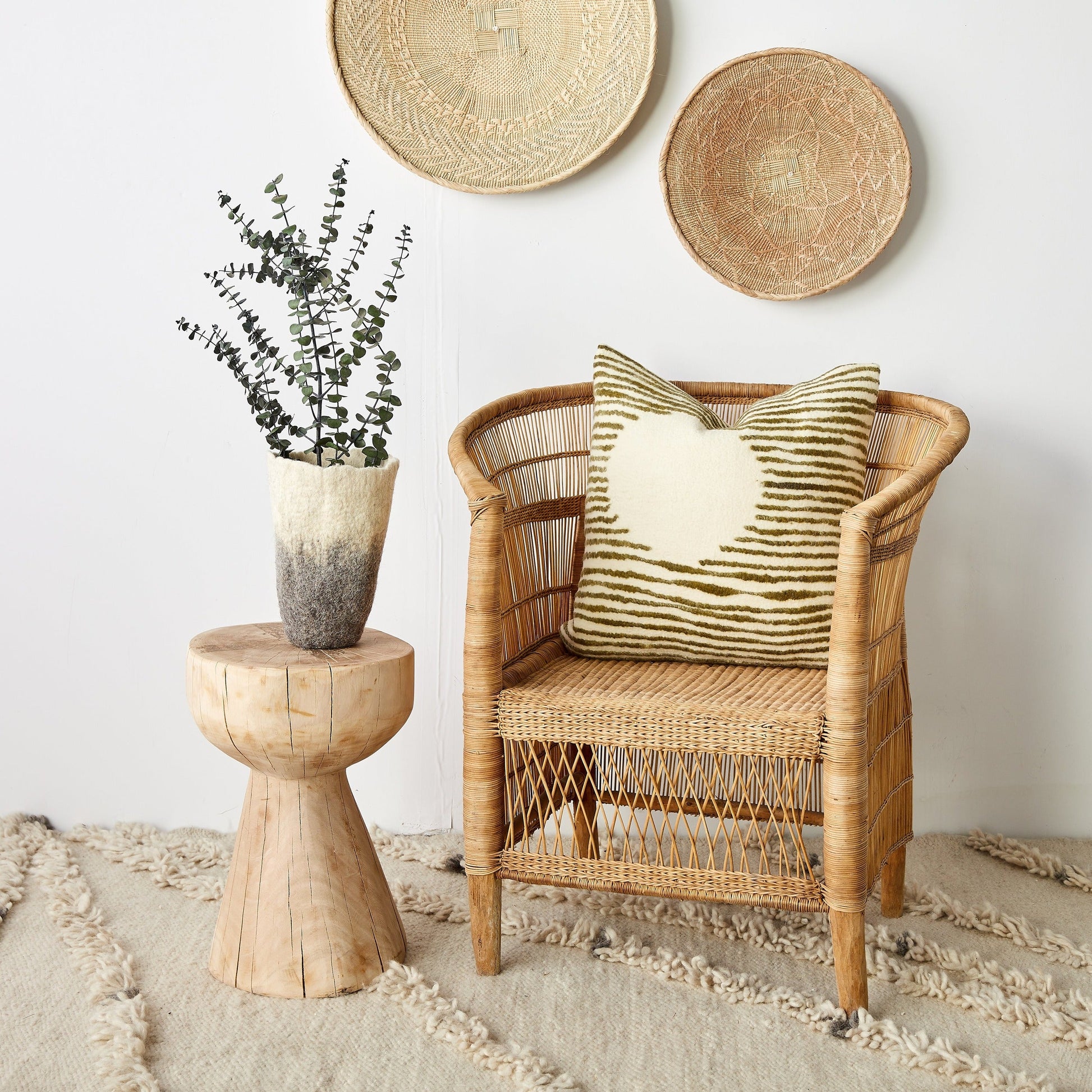 Behold the Full Moon Throw Pillow, A hand-felted wonder, Crafted from 100% merino wool, Each inch made by hands of gold. From hand dyeing to felting, Every step by artisan's touch, Creating an organic appearance, And a tactile sense that's much.