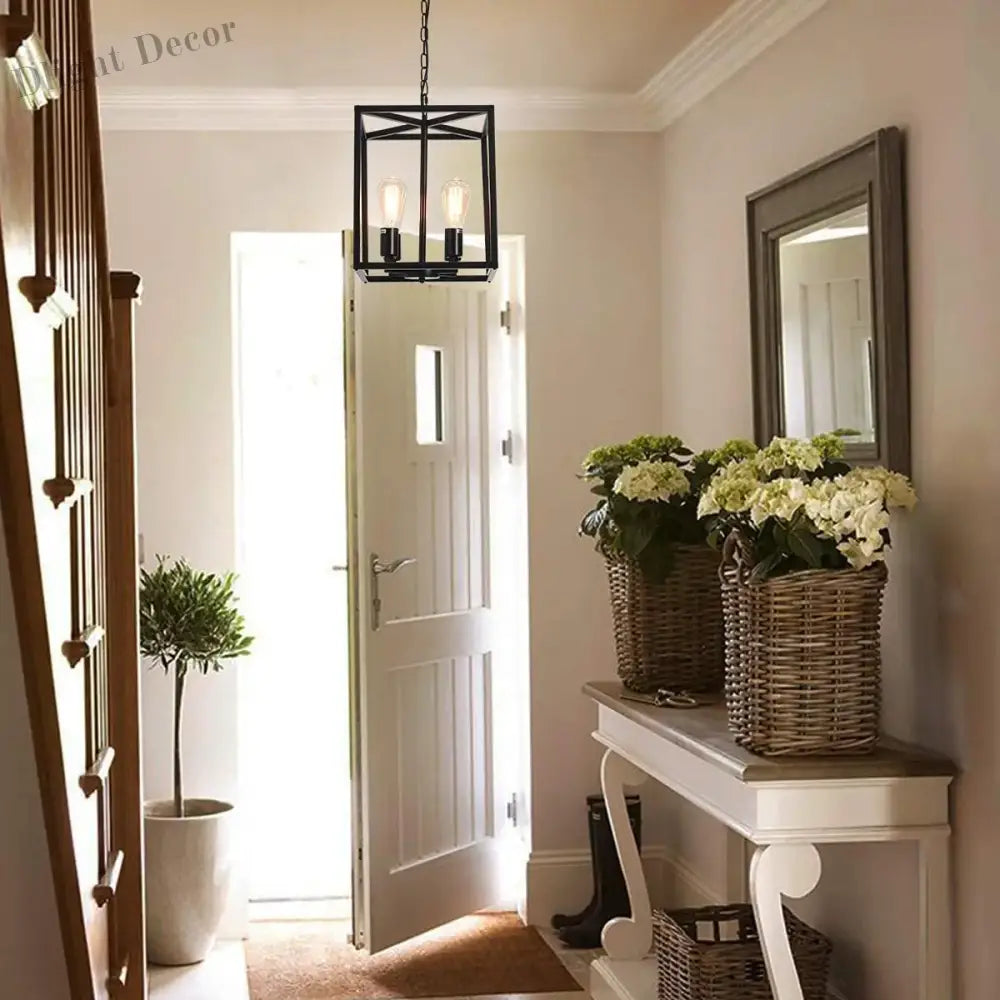Discover the perfect fusion of industrial chic and practical design with our 4-Light Industrial Cage Chandelier. Boasting a striking openwork metal design finished in classic black, this chandelier is a versatile addition to any space, blending seamlessly into farmhouse, coastal, and transitional styles. Its unique flexibility in height adjustment and compatibility with sloped ceilings makes it a standout choice for a variety of indoor settings.