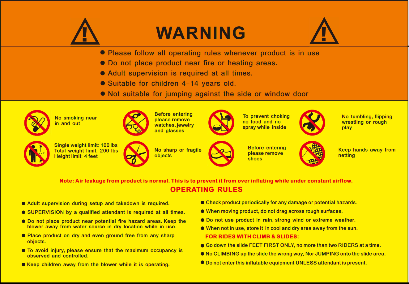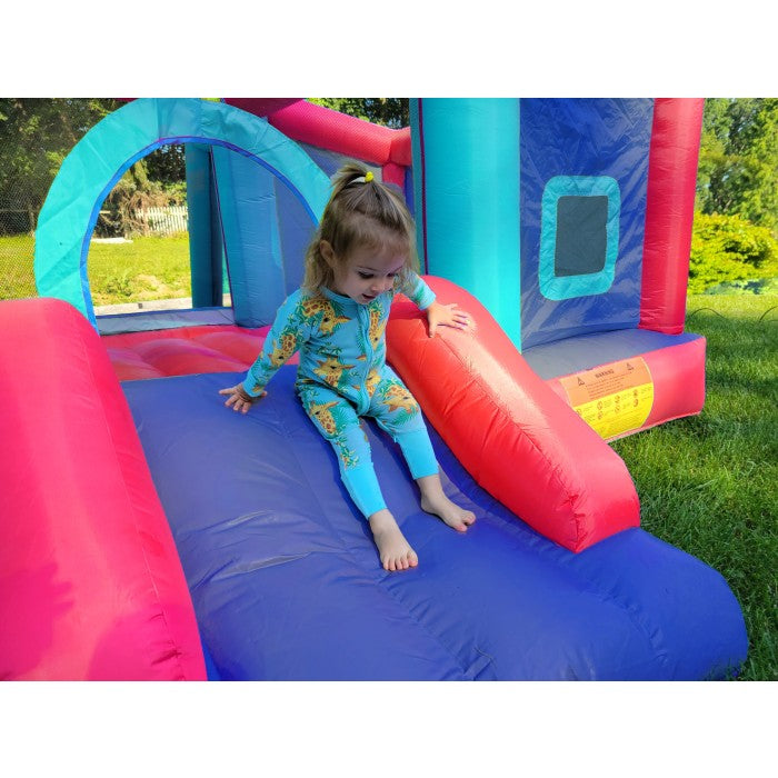 Transform your backyard into a fun-filled adventure zone with the Inflatable Bounce House with Blower and Jumping Castle with Slide. Perfect for parties, playdates, or any time your kids need to burn off some energy, this bounce house offers hours of entertainment. Measuring 71x82x84" (excluding the slide) and featuring a 34x28" slide, it's spacious enough for multiple children to jump, bounce, and slide safely. Crafted from durable, puncture-resistant materials, it comes with a powerful blower to ensure quick and easy setup. Let your kids enjoy endless bouncing fun while you relax, knowing they're safe and entertained.