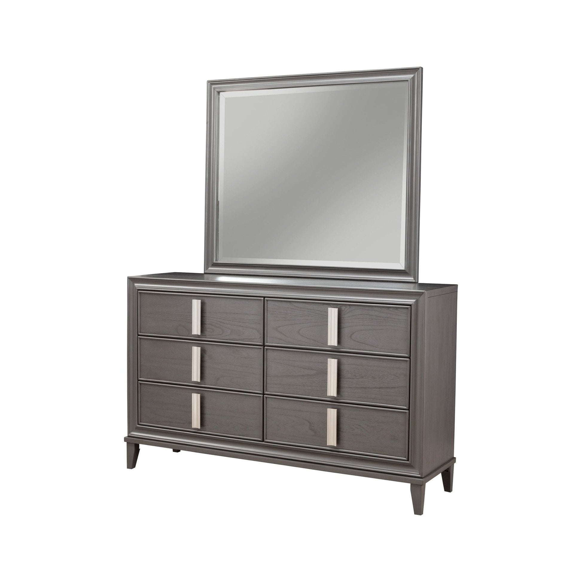 The Lorraine 6-Drawer Dresser is the perfect storage solution for your bedroom. The piece combines impeccable style and function. With clean lines, the beautiful Dark Gray finish highlights the Pine wood construction. Eye-catching nickel drawer pulls and felt-lined top drawers complete the piece. Matching mirror available. Coordinates with other pieces from the Alpine Furniture Lorraine bedroom collection sold separately.