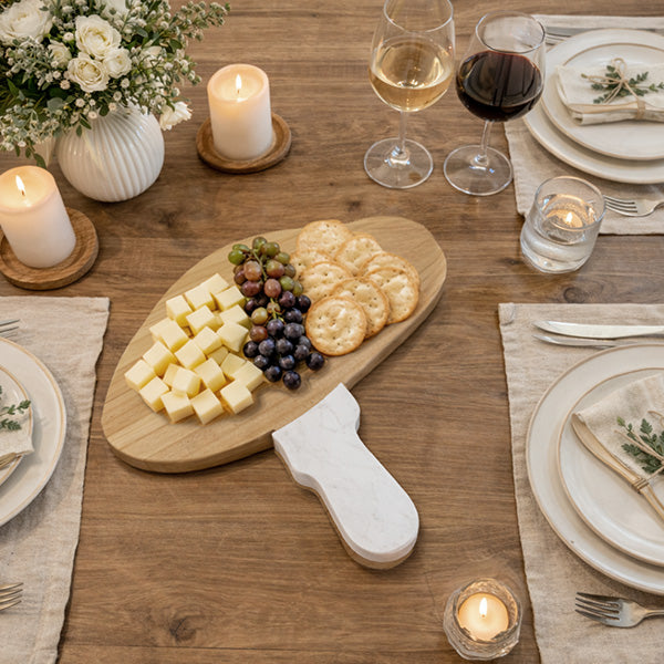 Our mushroom-shaped Wood Cutting Board blends beautifully finished wood with cool, natural marble for a look thatās equal parts playful and polished.