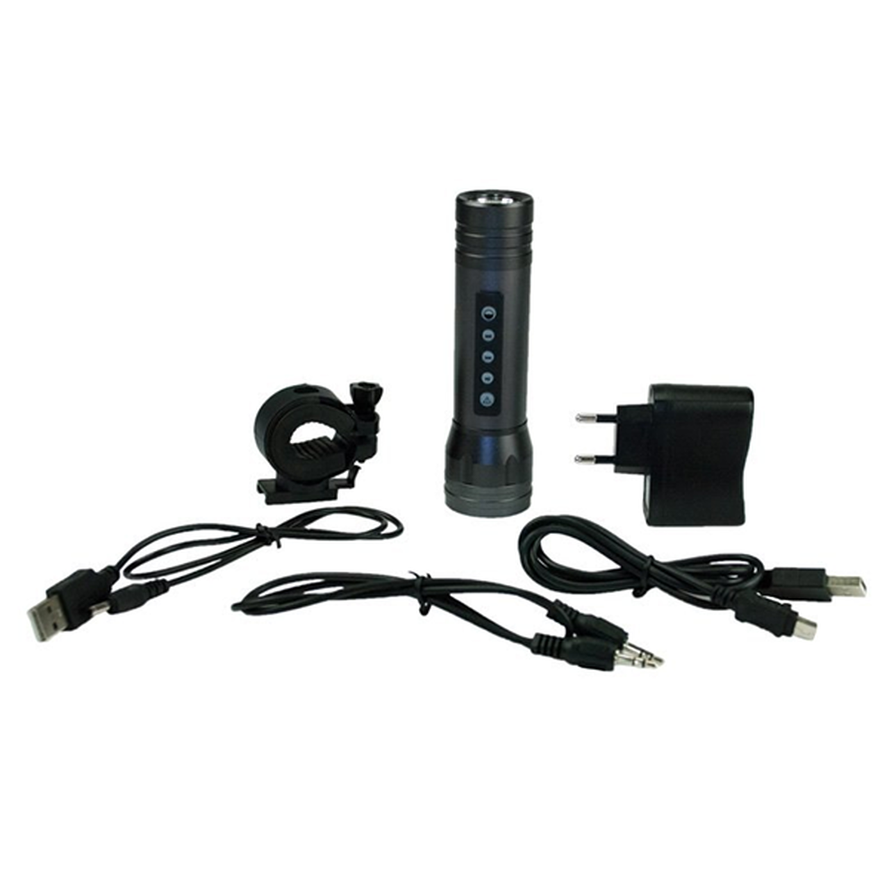 - Multifunctional LED Flashlight with Built-in Speaker + Bike Clip