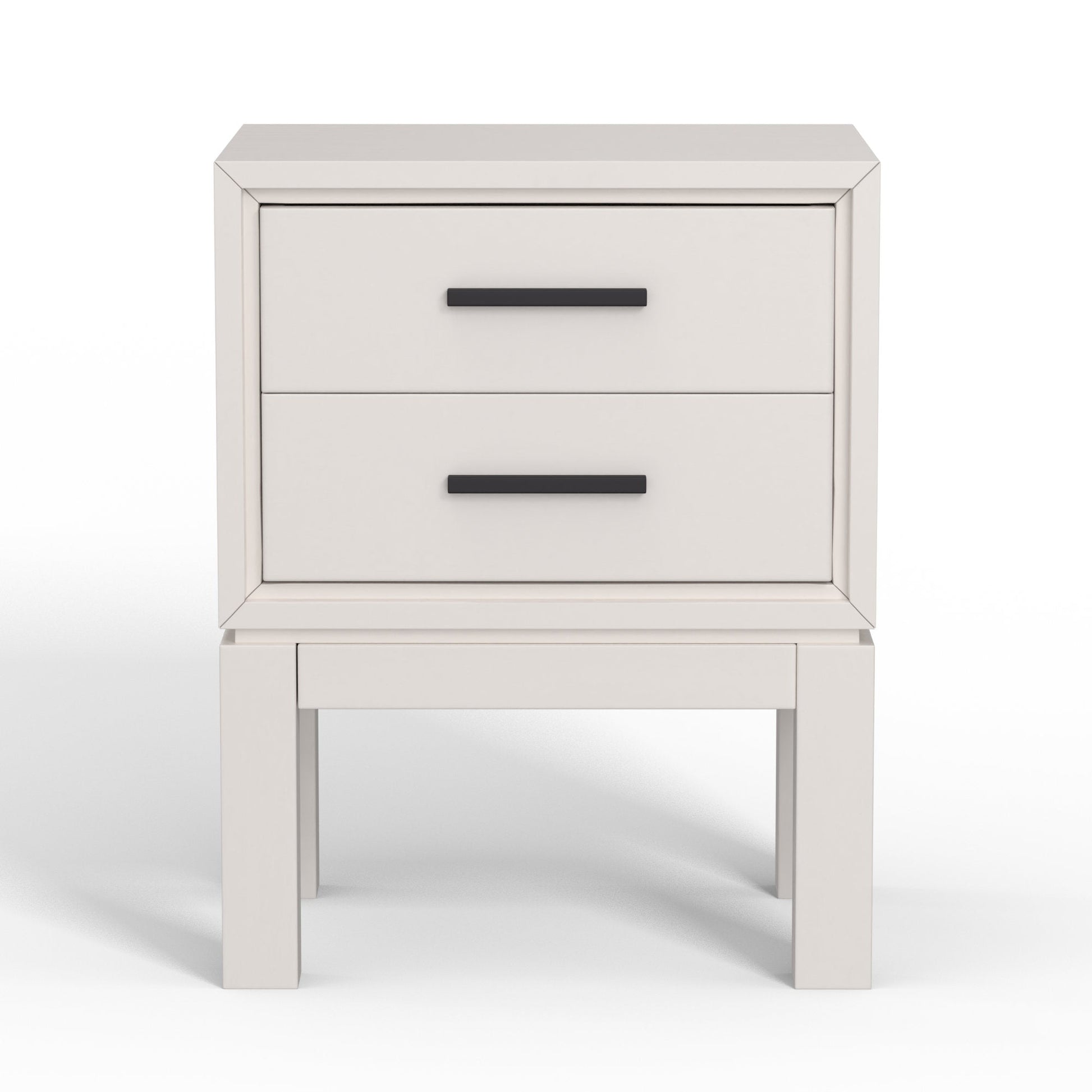 This exquisite Nova Nightstand stands out with its finesse and sophistication. Bronze hardware adorning two drawers gliding smoothly with metal ball bearing drawer glides enhanced by English dovetail drawer construction assure quality and durability. The top drawer is luxuriously lined with felt for an elegant touch, while the legs require light assembly for easy setup. A must-have piece that exudes luxury and distinction.