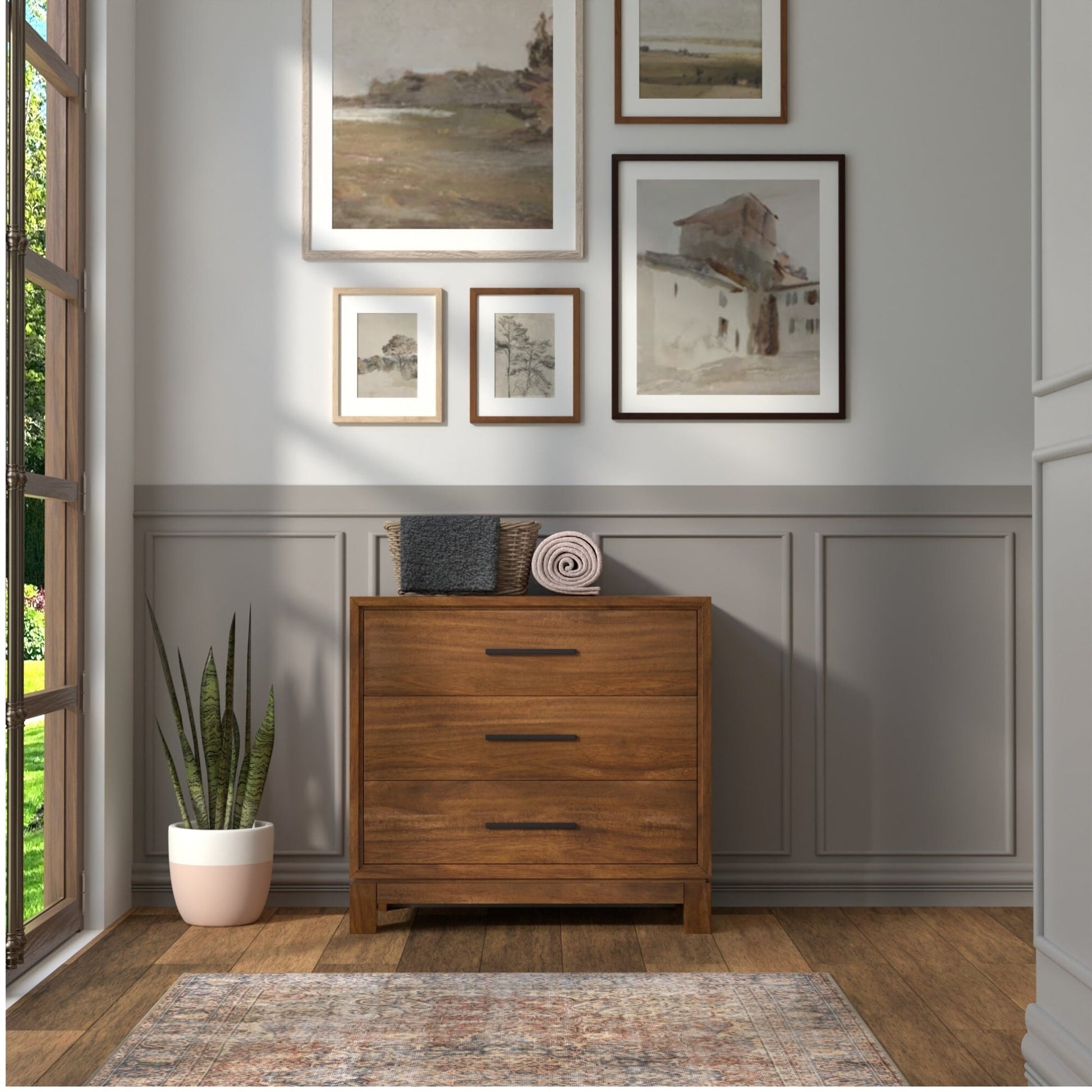 The Nova Small Chest makes a luxurious and elegant addition to any home. Its sophisticated design features English dovetail drawer construction, metal ball bearing drawer glides for smooth operation, and three drawers for plenty of storage space. Bronze hardware accents the chest's classic look, while a felt-lined top drawer provides protection and cushioning for valuable and delicate items. Fully assembled and ready to use, the Nova Small Chest is the perfect combination of style and practicality.