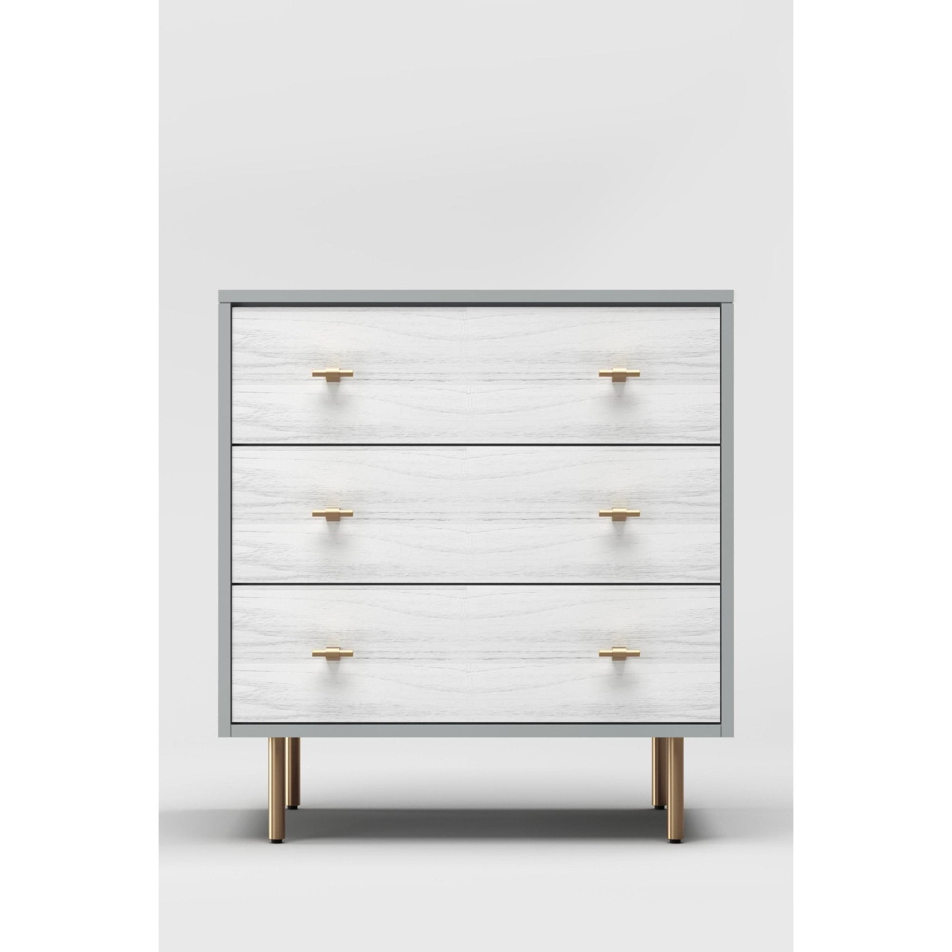Crafted with sophistication and luxury, the Saige Accent Chest offers a tasteful addition to any room. Its classic English dovetail construction, metal ball bearing drawer glides, and felt-lined top drawer provide a smooth and durable storage experience, while its three drawers with weathered white drawer faces and satin gold accents lend to its timeless beauty. Perfect for all of your sophisticated needs, this elegant chest is fully assembled and ready to give any room a touch of class.