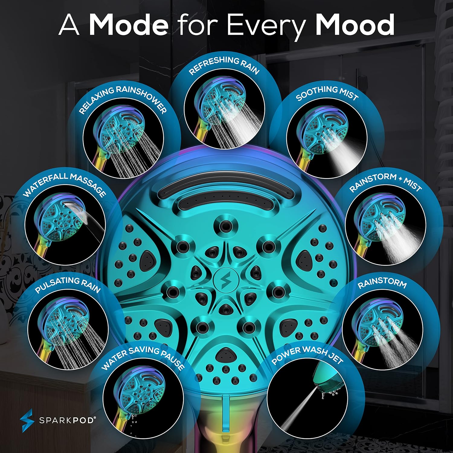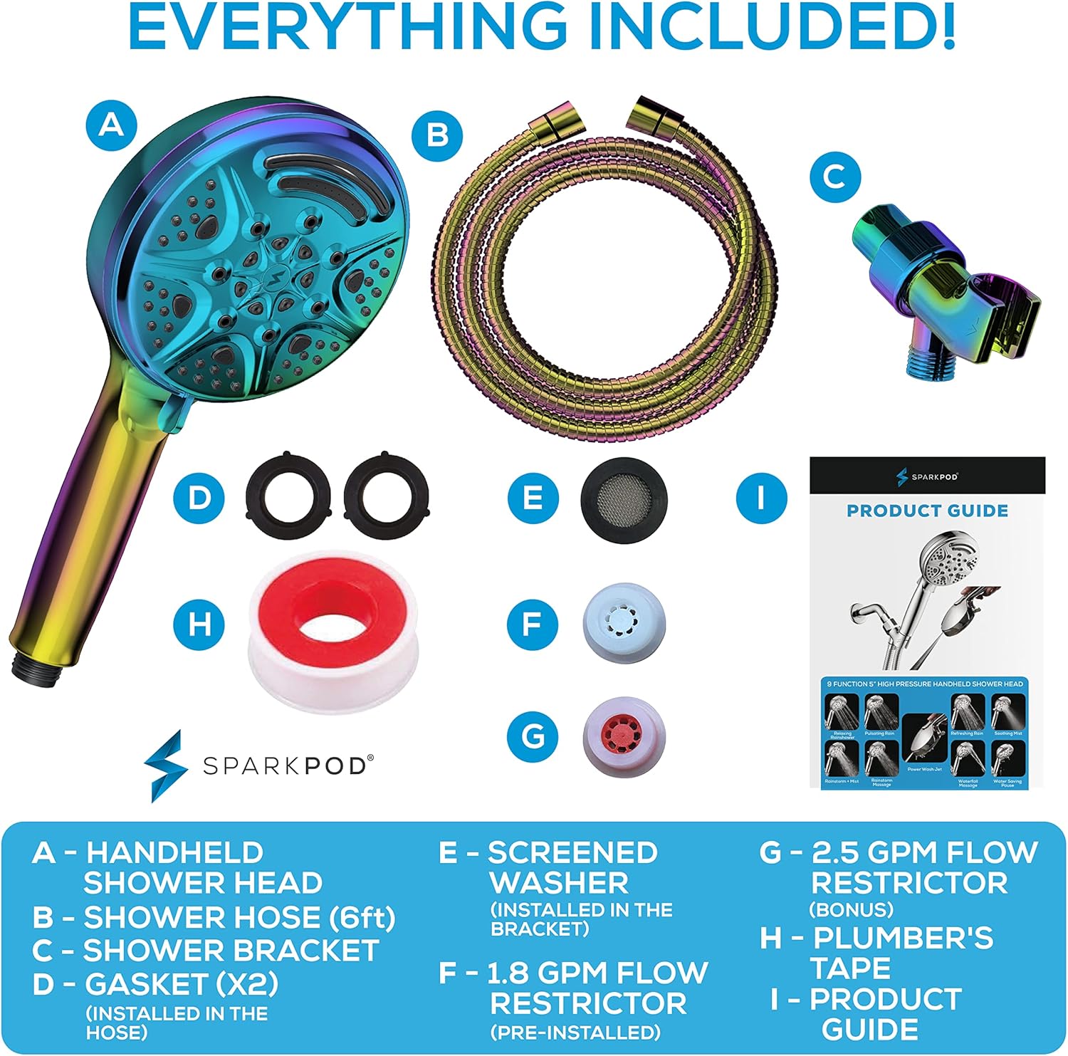 SparkPod 5 Inch 9 Spray Setting Rainbow Handheld Shower Head (Radiant Rainbow)