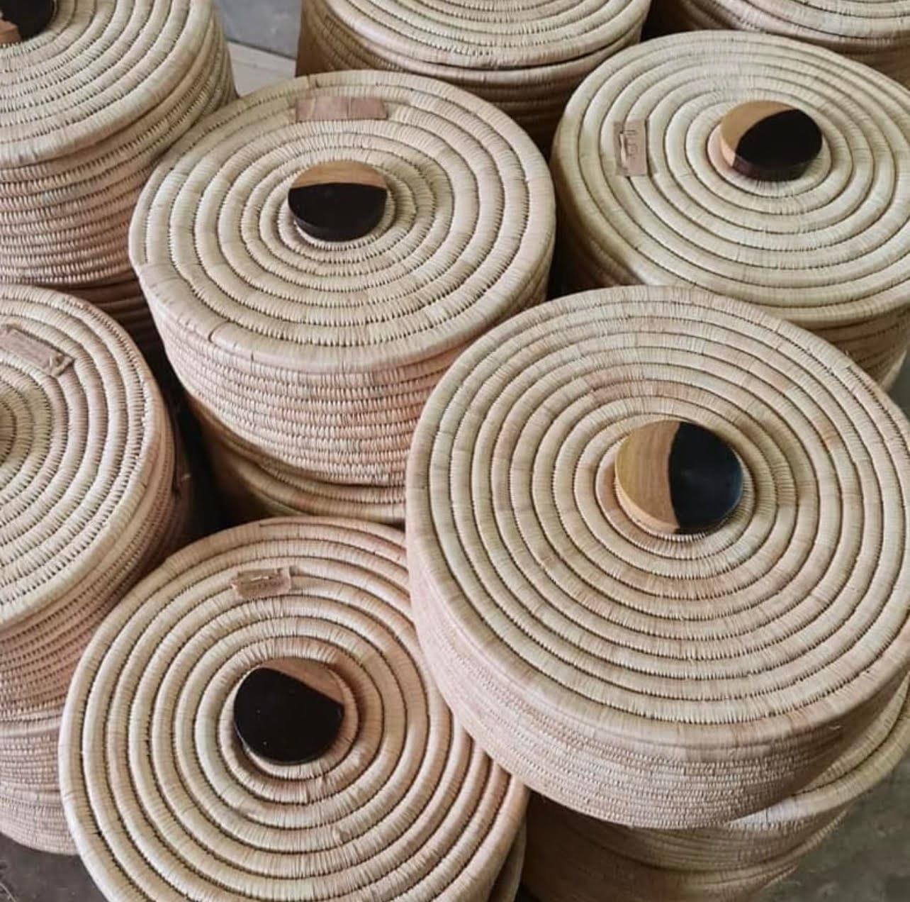 Elevate your space with the Sunga Lidded Tray Baskets, crafted using the traditional coiling weaving technique. These baskets are built to last, providing years of reliable use. Whether used as catch-alls, centerpieces, or accent pieces, they bring both style and functionality to any setting. Made from organic materials, these baskets exude a natural warmth that adds a touch of rustic charm to your decor. Handcrafted with care, each basket is a unique work of art, reflecting the skill and craftsmanship of the artisans who create them.